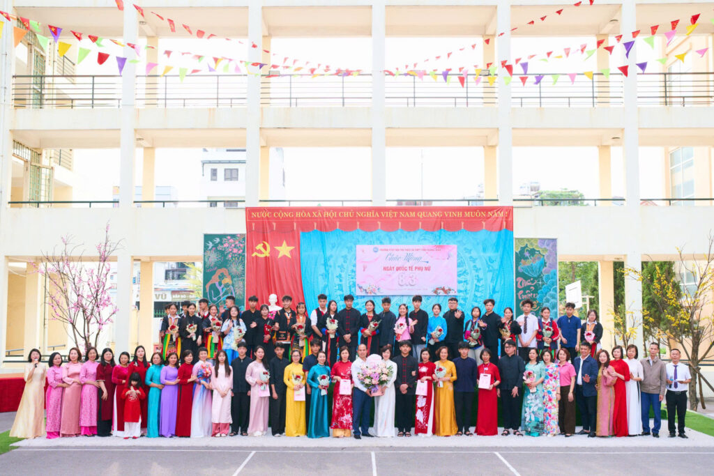 Đúng 14h00, sân trường tại cả hai cơ sở (Hạ Long và Tiên Yên) đã trở nên rực rỡ hơn bao giờ hết với sự hiện diện của toàn thể cán bộ, giáo viên, nhân viên và các em học sinh trong trang phục chỉnh tề, đậm đà bản sắc dân tộc. Chương trình không chỉ là hoạt động kỷ niệm 116 năm ngày Quốc tế Phụ nữ mà còn là nhịp cầu kết nối tình cảm giữa các thế hệ thầy và trò.