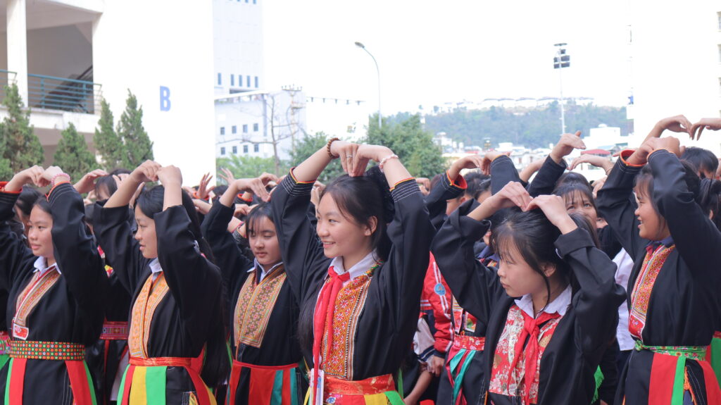Vũ điệu yêu thương”: Màn đồng diễn Flashmob quy mô toàn trường trên nền nhạc Medley sôi động đã thực sự “làm nóng” bầu không khí, thể hiện sự đoàn kết và tinh thần trẻ trung của học sinh Nội trú.